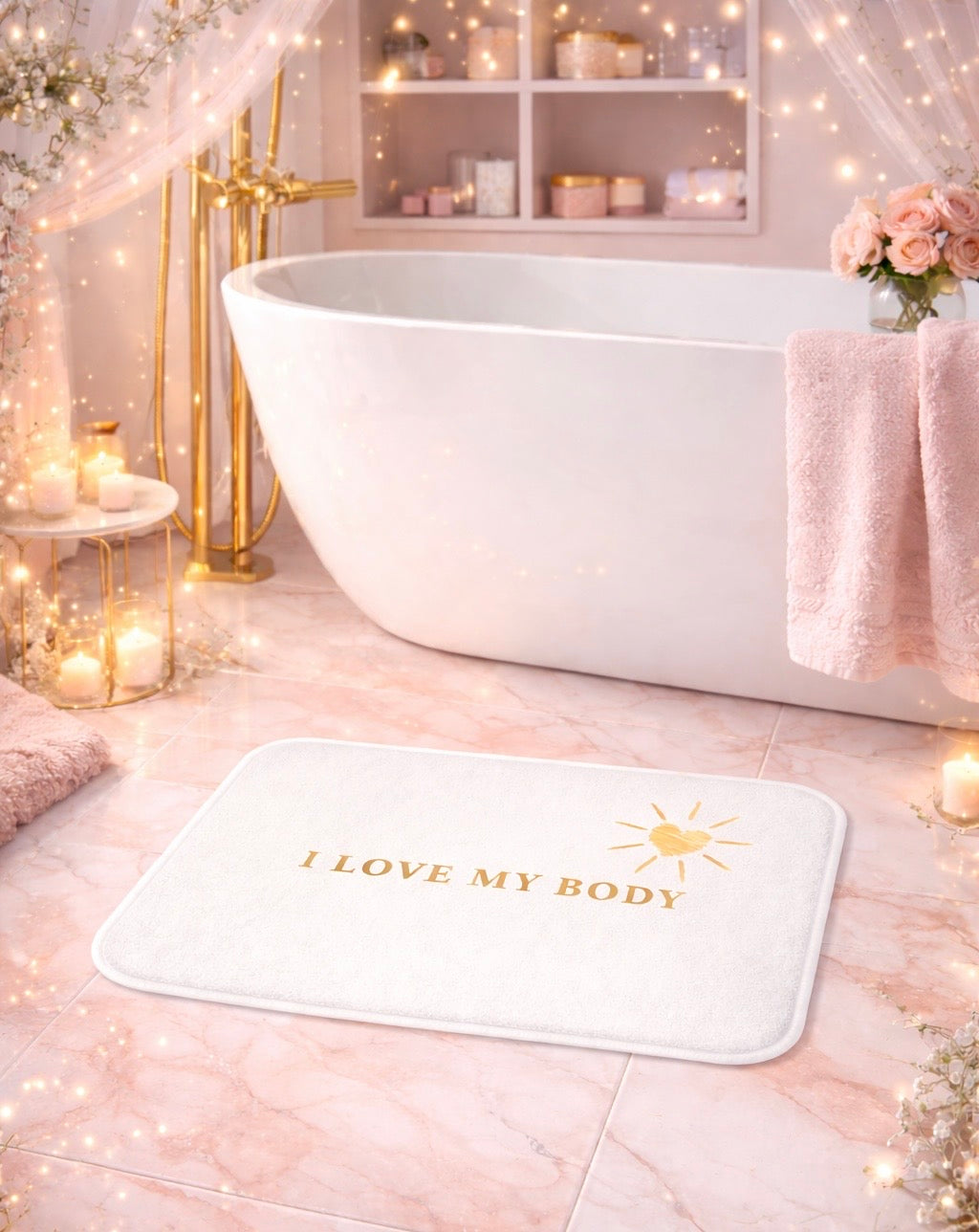 Des tapis de bain avec mantra, pour penser à l'écouter le temps de ton passage en salle de bain, pour un moment méditatif à toi!