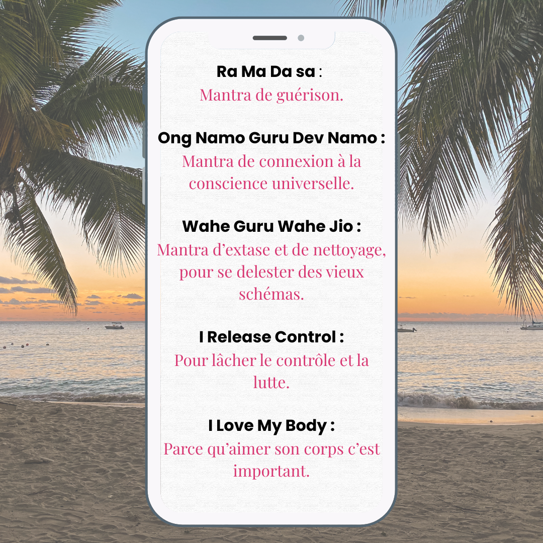 Tu peux trouver ces mantras sur les plateformes d'ecoute avec des versions musicales de tout style.